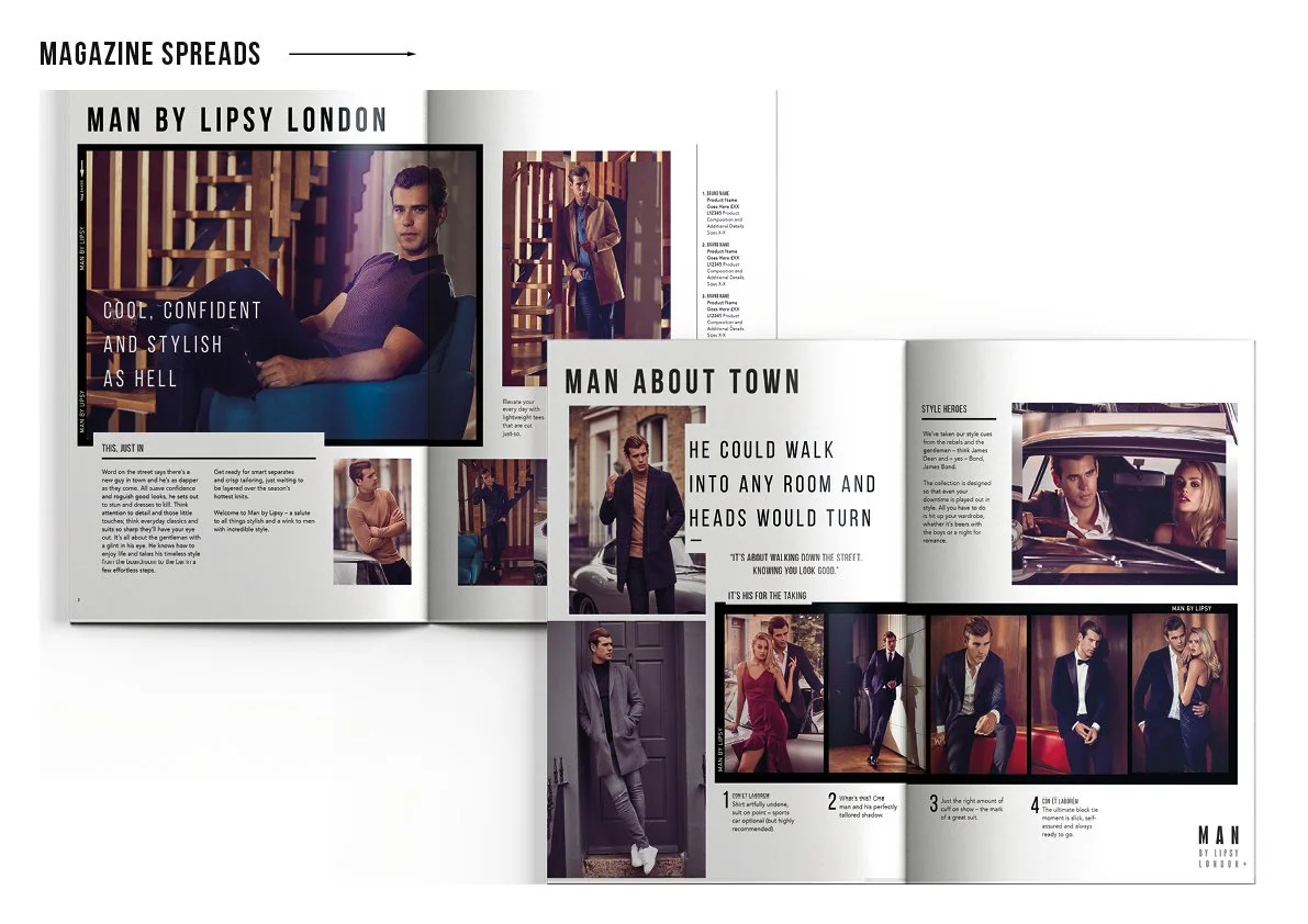 Man By Lipsy launched in October 2018. The project allowed me the opportunity to art direct for the new brand off the back of their sixties inspired shoot. I was required to produce a modern look & feel and create: printed press releases, magazine spreads, social media templates, HTML5 Google Ad’s, Animated instore screens, emails & landing pages.